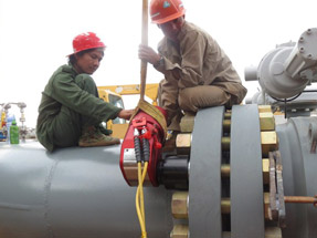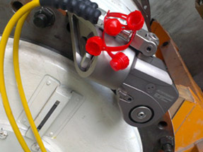 聚頂機械針對化工廠裝備公司的情況,派遣了有現(xiàn)場經(jīng)驗的技術(shù)員前往查看,現(xiàn)場工況相對不是很復(fù)雜,標配的液壓扳手就能解決,但也存在較為特殊的情況,如法蘭連接處不是平面,夾角不是垂直或者工作空間狹小等情況,聚頂機械公司從用戶的角度出發(fā),給出的解決方案不光滿足工作要求