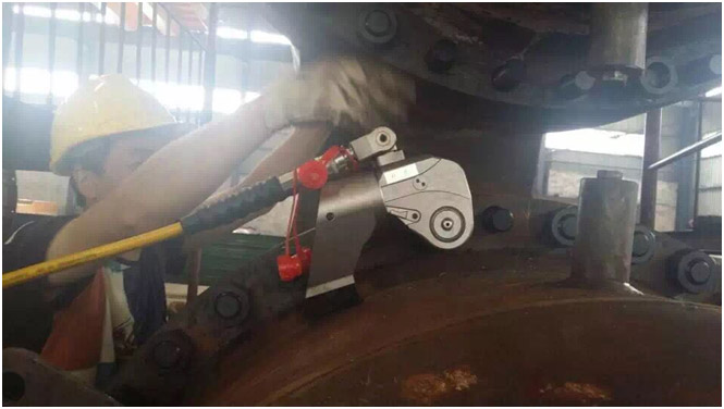 聚頂機(jī)械針對(duì)化工廠裝備公司的情況,派遣了有現(xiàn)場經(jīng)驗(yàn)的技術(shù)員前往查看,現(xiàn)場工況相對(duì)不是很復(fù)雜,標(biāo)配的液壓扳手就能解決,但也存在較為特殊的情況,如法蘭連接處不是平面,夾角不是垂直或者工作空間狹小等情況,聚頂機(jī)械公司從用戶的角度出發(fā),給出的解決方案不光滿足工作要求,還要為客戶節(jié)約成本,所以針對(duì)化工廠裝備公司常規(guī)以及特殊的現(xiàn)場情況聚頂機(jī)械公司采用一套液壓扳手就能解決全部問題的方案,得到客戶的高度認(rèn)可。由于現(xiàn)場工人不會(huì)使用液壓扳手,聚頂機(jī)械技術(shù)人員就手把手教操作人員,直到都能熟練操作為止,同時(shí)在現(xiàn)場工人的要求下,用液壓扳手裝配一套壓力容器,最后還要加水打壓檢測是否泄漏,一切都超出了工人們的預(yù)料,大家都說以后有了液壓扳手他們心里有底多了,以后就不再全部依賴“風(fēng)炮”了,技術(shù)主管人員也說使用液壓扳手后交付給客戶的產(chǎn)品,他們就放心了。