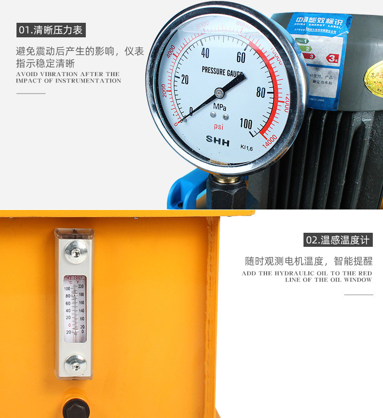超高壓電動油泵,是由柱塞泵、控制閥、油箱、電機、儀表等組成的一種獨立完整的液壓動力裝置。具有體積小重量輕、結構簡單、操作方便、工作壓力高等特點。在配備各種專用機具的情況下,可實現起重、彎曲、校直、擠壓、剪刀、鉚接、拆卸、壓裝等工作要求,作為液壓動力部件,還可以裝置在其他機械設備中。本泵可以實現停機保壓,在外油路不泄漏的條件下,停機保壓5分鐘,壓力下降不超過5MPa。