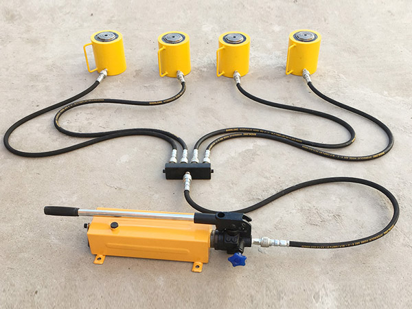 7、如需幾只千斤頂同時起重時,除應正確安放千斤頂外,應使用多頂分流閥,且每臺千斤頂?shù)呢摵蓱猓⒁獗3制鹕俣韧。還要考慮因重量不勻地面可能下陷的情況,防止被舉重物產(chǎn)生傾斜而發(fā)生危險。