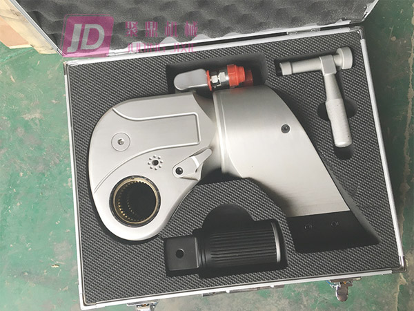 驅(qū)動式液壓扳手屬于液壓扭矩扳手中的一種。YD型液壓扳手結(jié)構(gòu)緊湊,體積小,重量輕,輸出扭力大,是螺帽拆卸和螺栓預(yù)緊的得力工具。扭力控制在此3%范圍內(nèi),能滿足聯(lián)接預(yù)緊高精度扭力值的要求。單向棘輪棘爪機械防止驅(qū)動軸逆轉(zhuǎn),確保操作可靠,可調(diào)整支承力臂,充分適應(yīng)不同作業(yè)環(huán)境,不受空間限制,操作得心應(yīng)手。 標準四方形驅(qū)動軸,配合不同規(guī)格套筒,適合多種場合應(yīng)用。